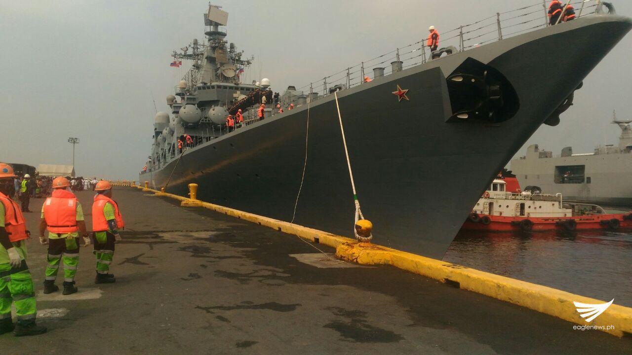 The Slava-class guided missile cruiser Varyag docked at Pier 15 in Manila South Harbor past 9 a.m.
