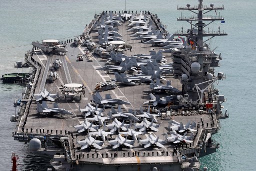 SEOUL, South Korea (AFP) — South Korean warships will take part in upcoming joint drills involving three US aircraft carriers in a fresh show of force against North Korea, a Seoul military official said Friday.