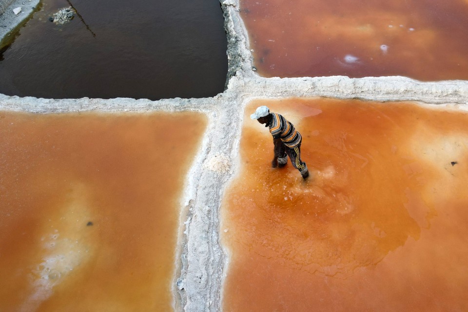 Over centuries, hundreds of pits have been dug by hand and then filled with water to leach salt from the local rock.
