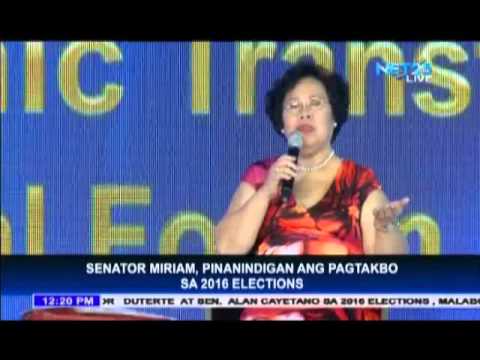 Senator Miriam Defensor-Santiago gives rest to rumors saying that she will withdraw from the 2016 elections to give way to Davao City Mayor Rodrigo Duterte. The senator said that although she believes in Duterte, it doesn’t mean that she will withdraw from the elections.