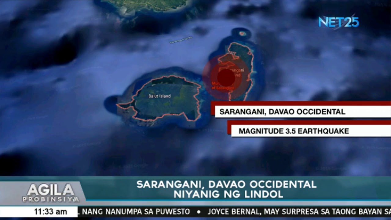 Niyanig ng magnitude 3.5 na lindol ang Sarangani, Davao Occidental kaninang alas 9:01 ng umaga.
