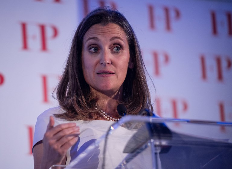 “Canada will always stand up for human rights, in Canada and around the world, and women’s rights are human rights,” Freeland told an audience in Vancouver.