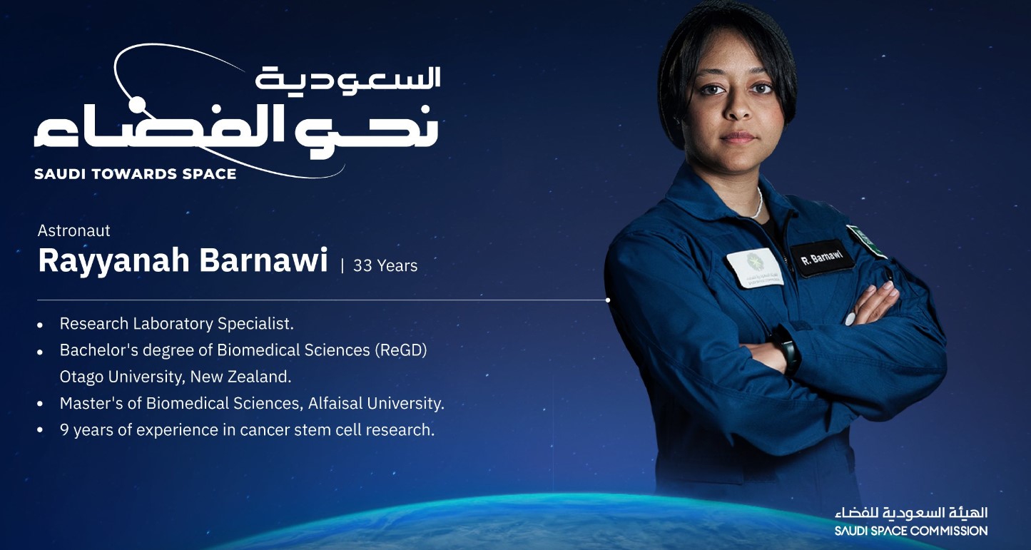 Rayyana Barnawi will join fellow Saudi Ali Al-Qarni on a 10-day mission to the International Space Station (ISS), the official Saudi Press Agency (SPA) said.