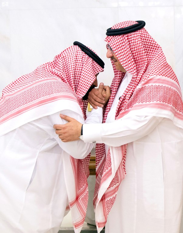 Saudi television channels showed the bearded Mohammed bin Salman kissing the hand of his ousted cousin Mohammed bin Nayef and kneeling in front of the older prince, who patted his shoulder to congratulate him.
