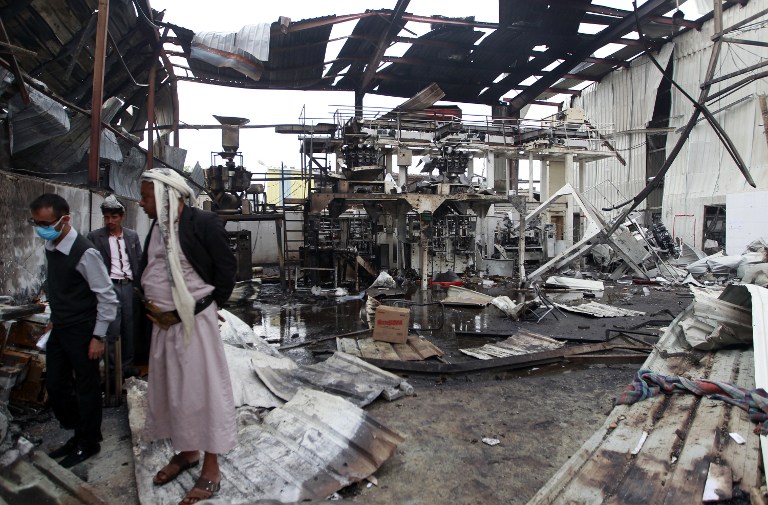 Abdullah al-Aqel the director of the factory said it is located near a military equipment maintenance centre that was targeted in the raids. / AFP PHOTO / MOHAMMED HUWAIS