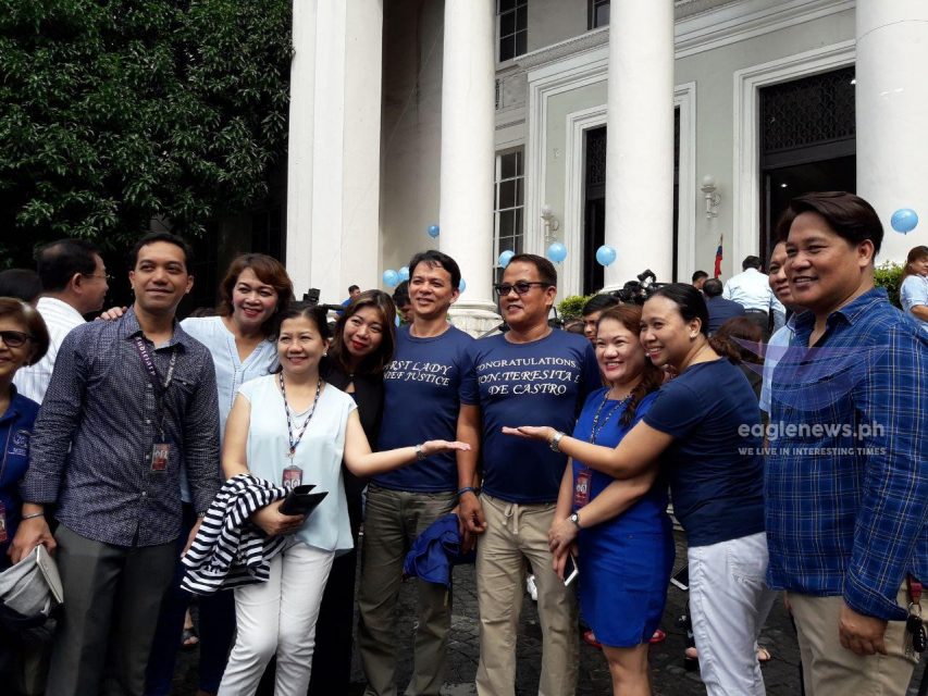 During Monday’s flag ceremony, some SC employees also wore blue T-shirts which said, “First Lady Chief Justice” referring to De Castro.  (with a report from Moira Encina, Eagle News Service)
