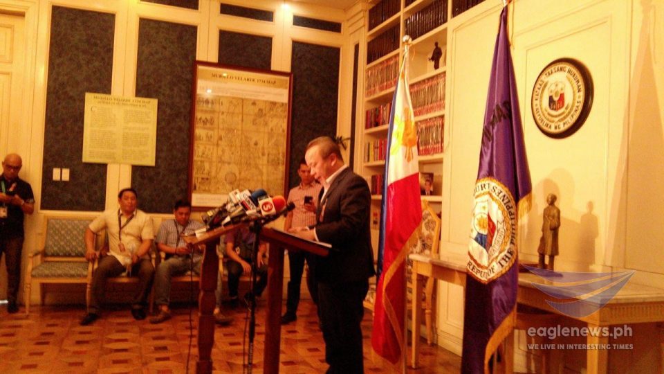 Supreme Court spokesperson Atty. Theodore Te reading the official SC statement on the indefinite leave of Chief Justice Maria Lourdes Sereno. (Photo by Moira Encina, Eagle News Service)