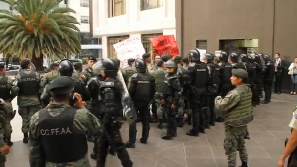 Scuffles later erupted when some protesters found their way into the Institute and were forcibly removed.