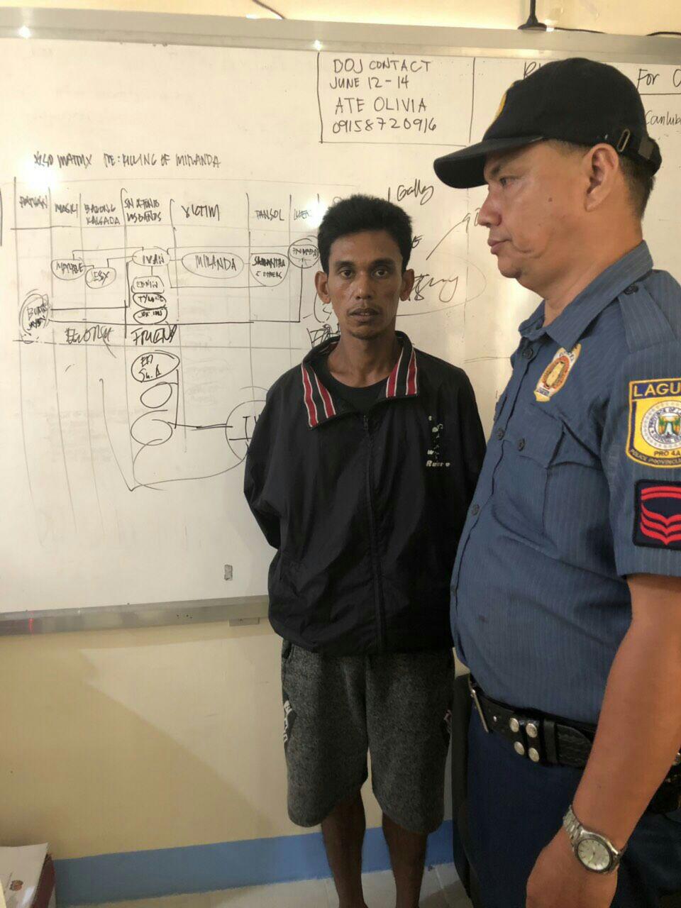 The suspect identified as Renz Ivan Valderama was arrested before 4 a.m. on in Barangay Pansol, Calamba, Laguna.