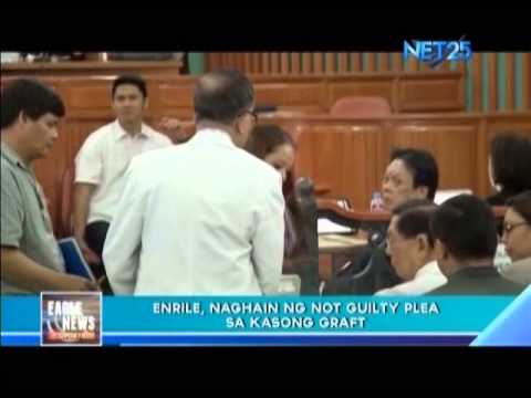 Senate minority leader Juan Ponce Enrile pleads “not guilty” saying that he did not commit any crime. His co-accused Janet Lim Napoles and TRC Director-General Dennis Cunanan also entered a not guilty plea, but his chief of staff, Atty. Gigi Reyes refused to enter any plea.