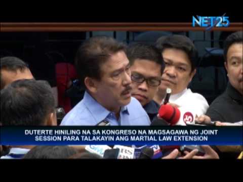 According to Sotto, based on Duterte’s request, the joint session on martial law in Mindanao–which could be extended to 60 more days—will be held at 9 a.m.