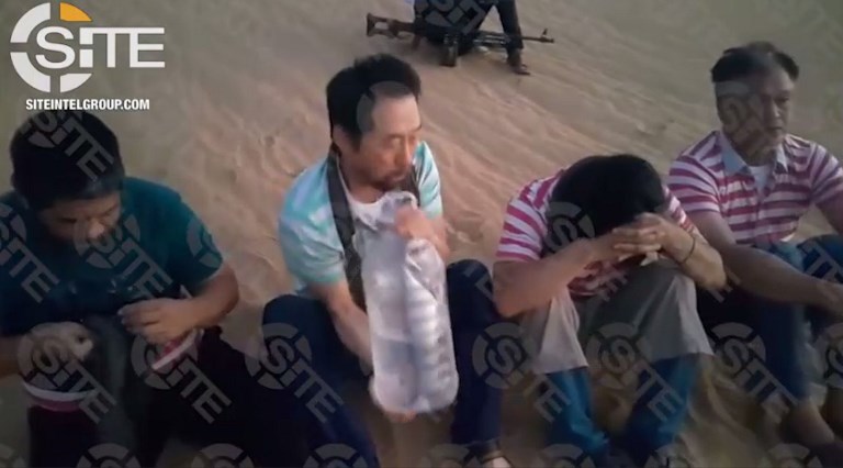 Seoul said on August 2 it had deployed a warship to Libya in an apparent show of force to secure the release of a South Korean national kidnapped along with three Filipinos in the North African country. / AFP PHOTO / SITE INTELLIGENCE GROUP / Handout