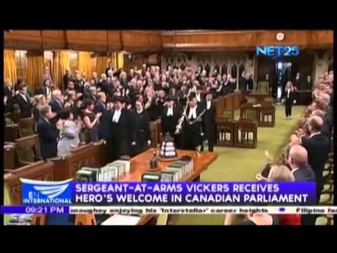 Sergeant-at-arms Kevin Vickers received a hero’s welcome at the Canadian parliament who shot down the attacker against the said government body.