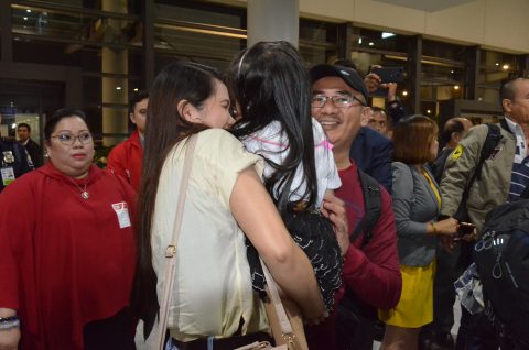 They were accompanied by Presidential Adviser on Overseas Filipino Workers Affairs Abdullah Mama-o and Philippine Embassy Chargé d’Affaires Mardomel Melicor, and were welcomed home by their wives and children and Labor Secretary Silvestre Bello III and Foreign Affairs Undersecretary for Migrant Workers Affairs Sarah Lou Arriola.