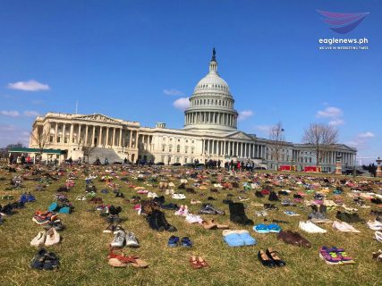 WASHINGTON D.C., (Eagle News) – Seven thousand pairs of shoes were placed on the United States Capitol lawn by activist group Avaaz early Tuesday morning to represent the lives lost by gun violence in schools since the 2012 Sandy Hook school shooting.