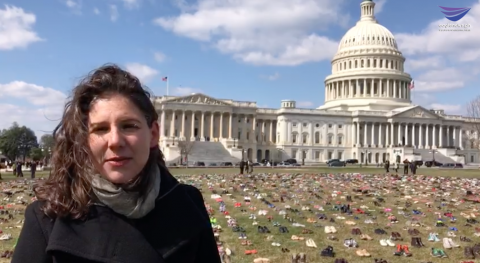 “Behind me are seven thousand empty pairs of shoes that represent the kids who have been killed by gun violence since Sandy Hook in 2012,” said Emma Ruby-Sachs, Avaaz representative. “It’s at the foot of Congress because it’s bringing the real human costs of this gun violence to the door step of our lawmakers.”