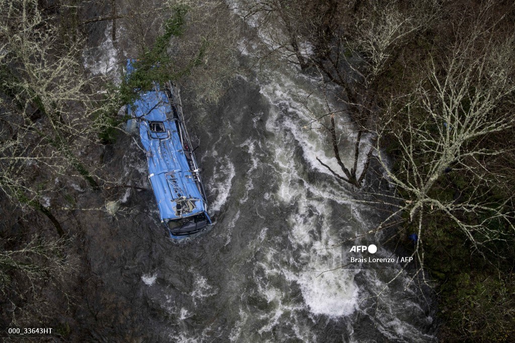 The accident happened on Saturday as the bus was crossing a bridge over the Lerez river near Pedre village some 50 kilometres (30 miles) south of Santiago de Compostela.