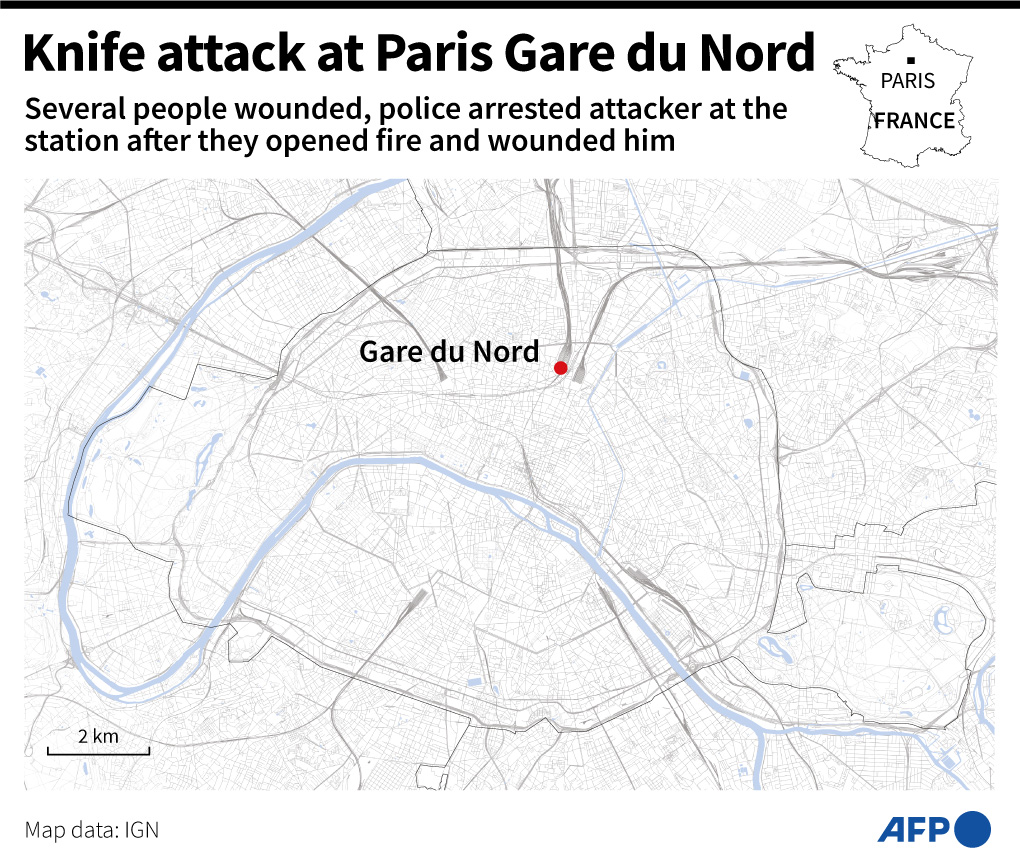 Several people were lightly wounded on Wednesday by a man wielding a knife at the busy Gare du Nord station in Paris, French authorities said.