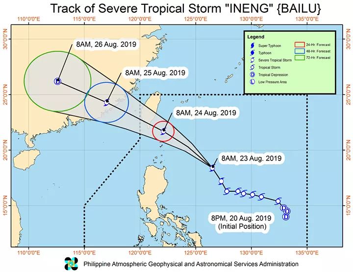 (Eagle News)–Severe Tropical Storm “Ineng” has slightly accelerated as it moved in a north-northwest direction on Friday, Aug. 23.