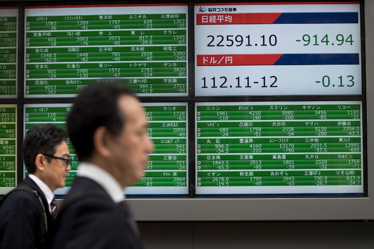 TOKYO, Japan (AFP) — Asian stocks opened the week on the back foot Monday, with investors still in gloomy mood after several days of market turbulence sparked by trade rows and a spat over the US central bank.