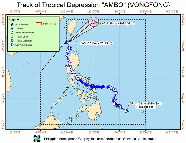 The Philippine Atmospheric Geophysical and Astronomical Services Administration said as of 10 a.m., the center of the tropical depression was estimated based 210 km northwest of Calayan, Cagayan or 185 km west of Basco, Batanes.