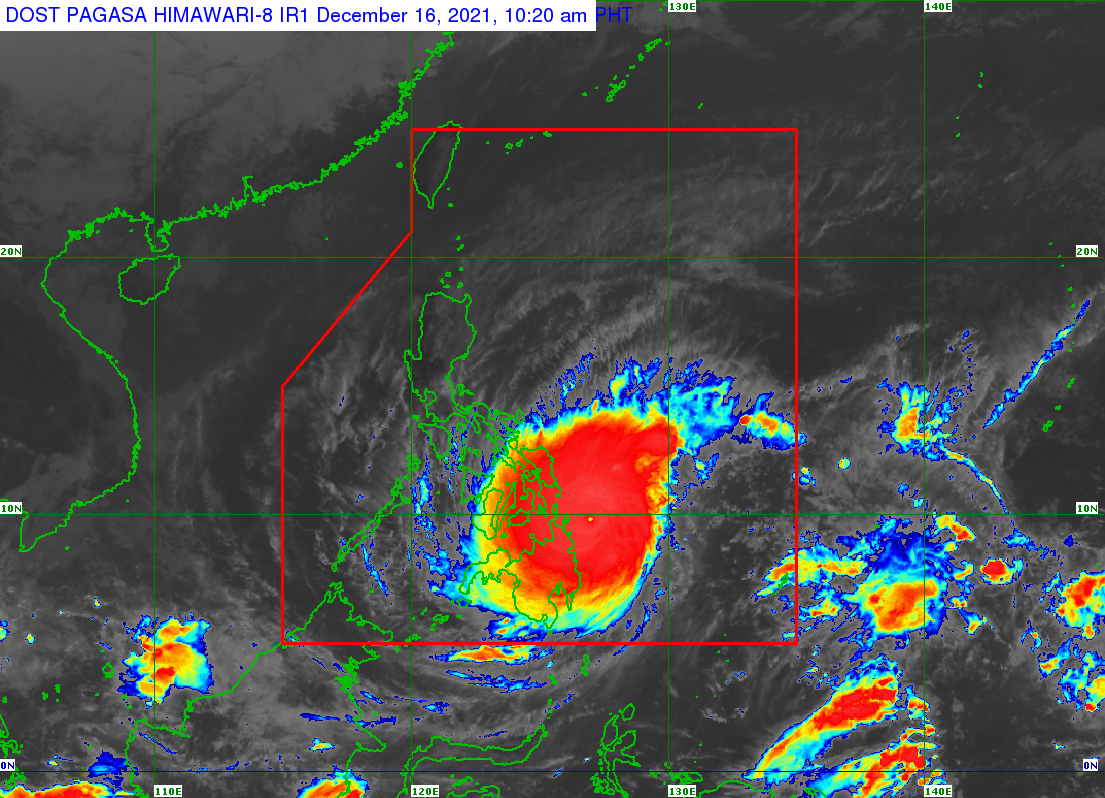 According to PAGASA, “Odette” was so far located 175 km east of Surigao City, Surigao del Norte, packing maximum sustained winds of 185 km/h near the center and a gustiness of up to 230 km/h.