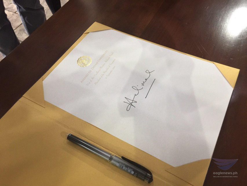 It was at 11:30 a.m., on Wednesday, when the Singaporean leader arrived at the Rodriguez Hall, CCFC Building, of Ateneo de Davao University.