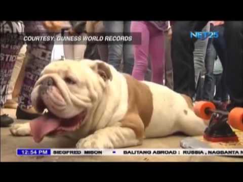 Otto, a bulldog, set a Guinness world record through his skateboarding skills when it traveled the longest human tunnel in the said city.