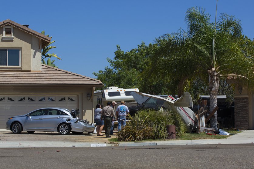 A small single-engine plane crashed into the back yard of a home in the city of Compton, south of Los Angeles, on Wednesday afternoon (October 7), the Los Angeles County Sheriff’s Department said.