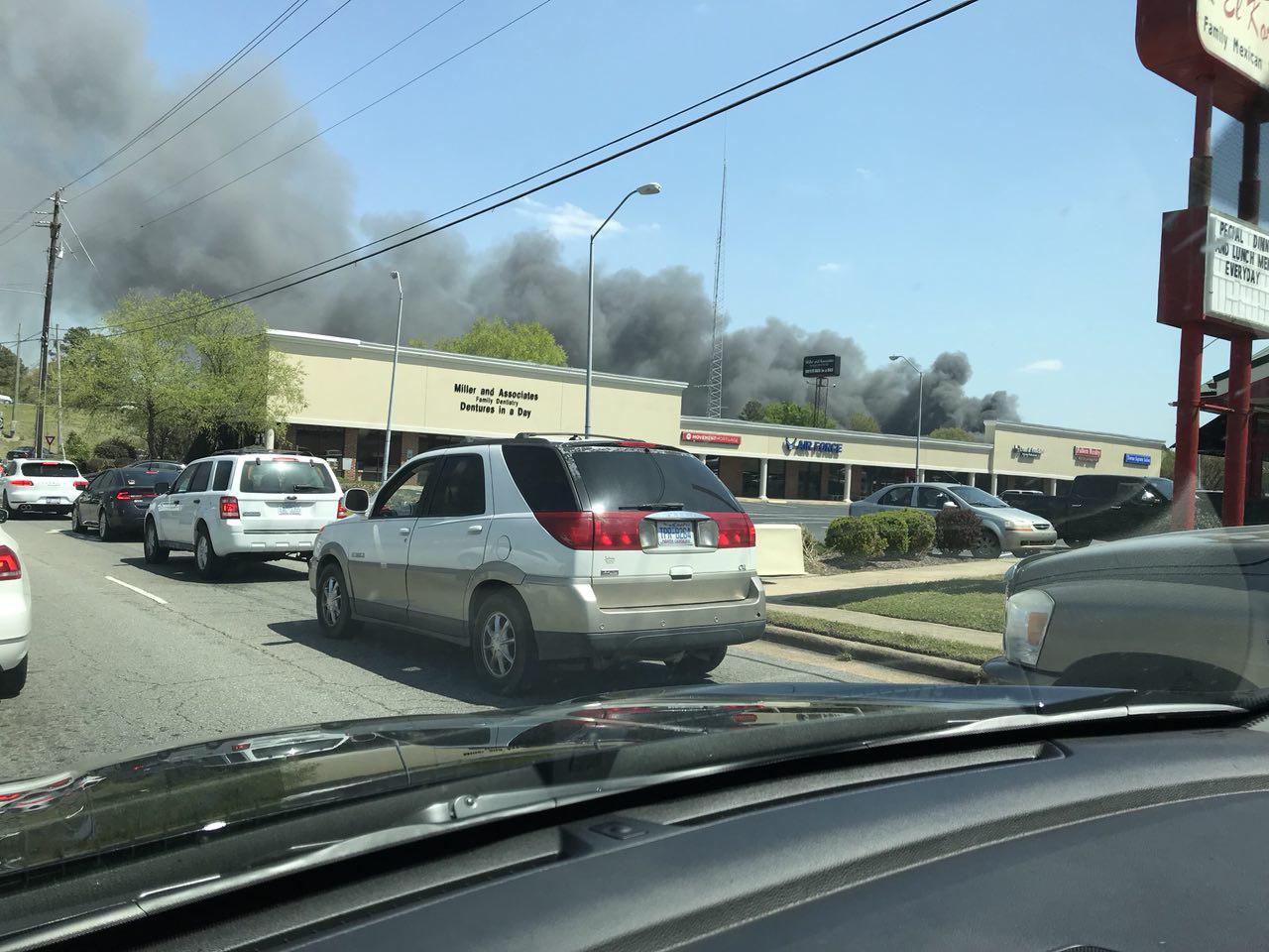 GOLDSBORO, NC (Eagle News) — Smoke pours into the sky as authorities respond to a fire reported near Martin Luther King Highway in Goldsboro, North Carolina. The fire is causing major traffic delays in the area and, according to reports of local residents, is said to be burning at the Eastern Aluminium Supply building.