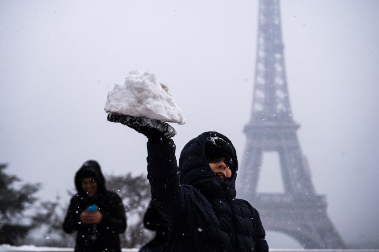 PARIS, France (AFP) — The Eiffel Tower turned away tourists on Tuesday as snow swept across northern France, causing traffic chaos in Paris during the French capital’s first real dose of wintry weather this season.