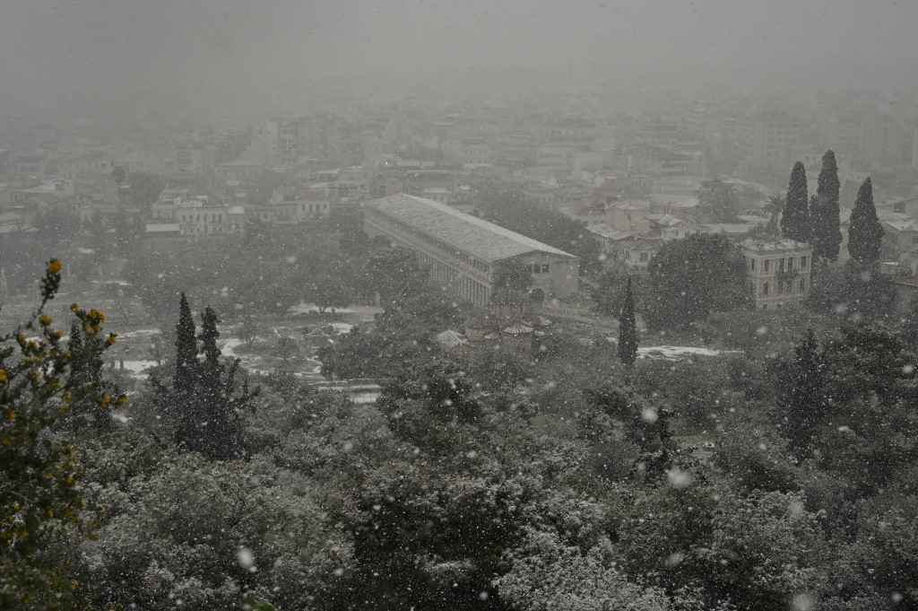 Temperatures plummeted to -14 degrees Celsius (6.8 Fahrenheit) overnight as the front dubbed ‘Elpis’ (the Greek word for hope) brought the first snow of the winter to central Athens.