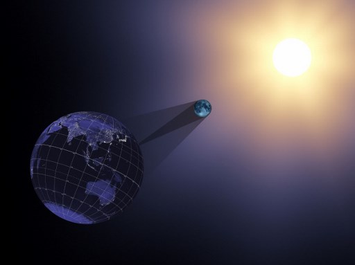 The eclipse happens when the Moon passes between the Earth and Sun, blocking the light.