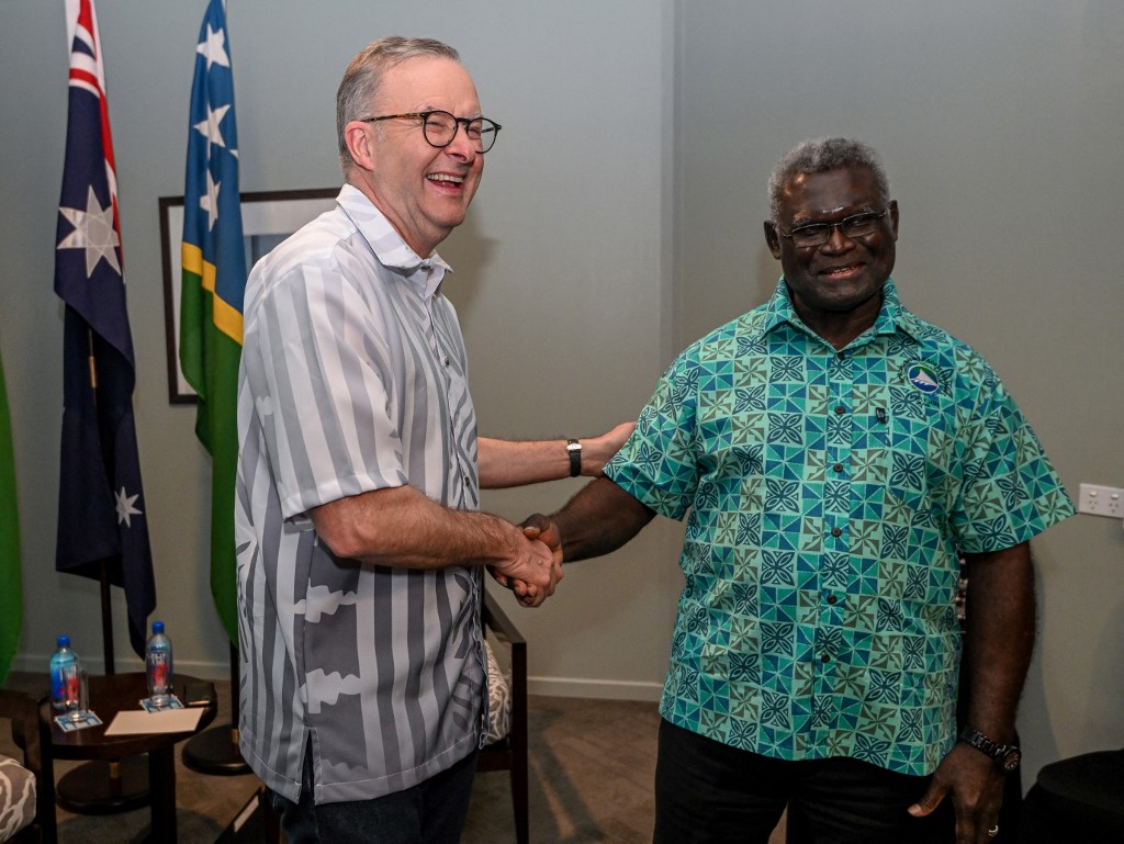 Sogavare embraced Albanese on the sidelines of the Pacific Islands Forum, telling the Australian leader: “I need a hug”.