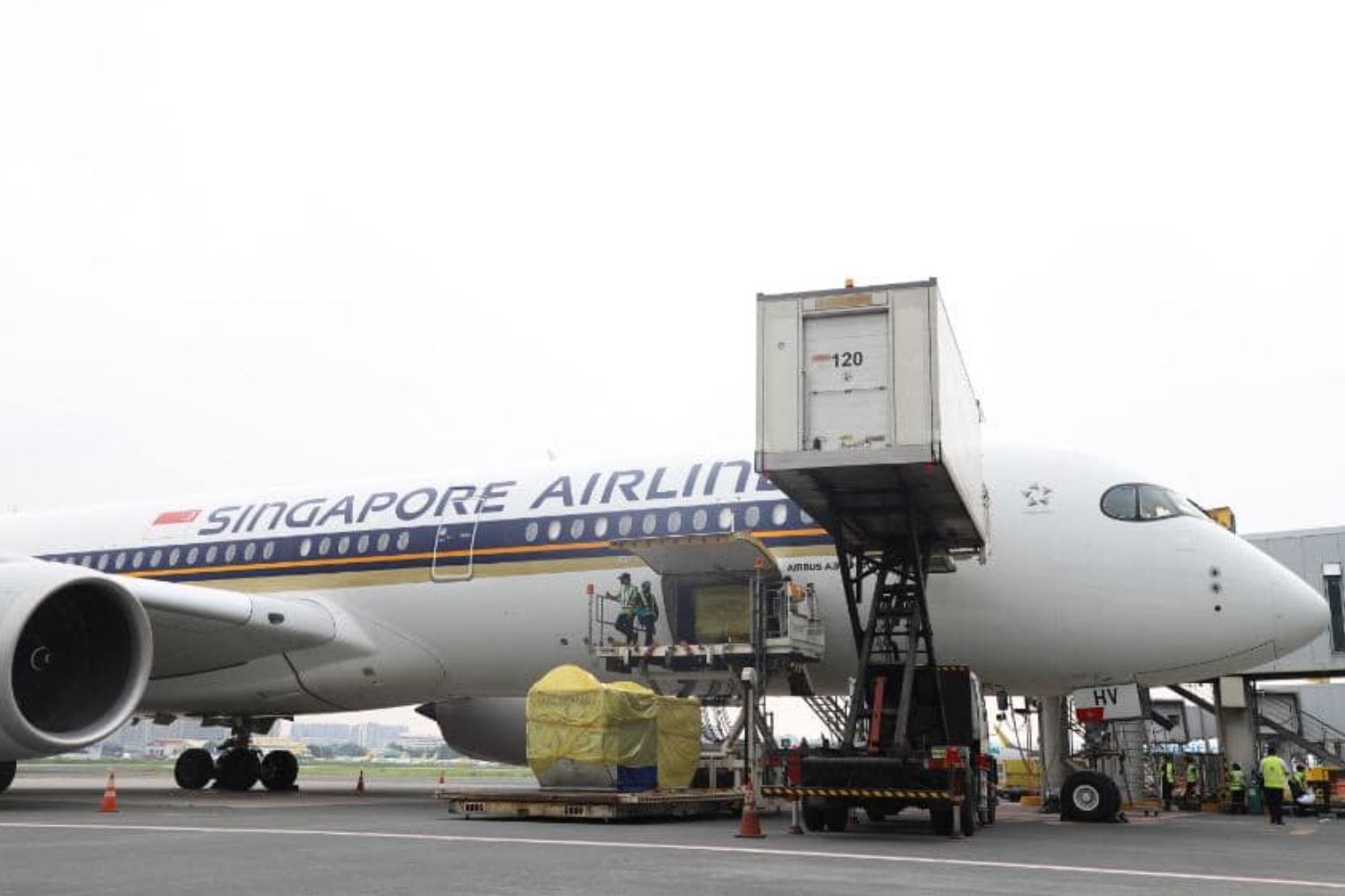 The Singapore Airlines flight carrying 469,200 Moderna doses arrived at Terminal 3 of the Ninoy Aquino International Airport on Sunday.