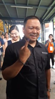 Senator JV Ejercito was with his wife Cindy when he cast his ballot at the Xavier school in San Juan.