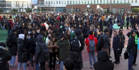 “I am concerned about the quakes but I am summoning up courage to focus on the exam,” student Kim Han-Beom in Pohang told the Yonhap news agency.