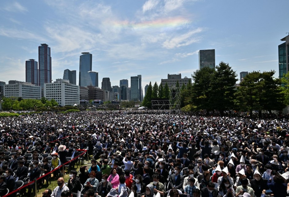 Around 40,000 people attended the massive inauguration ceremony, which local reports said was the country’s most expensive such event by far, at 3.3 billion won ($2.6 million).