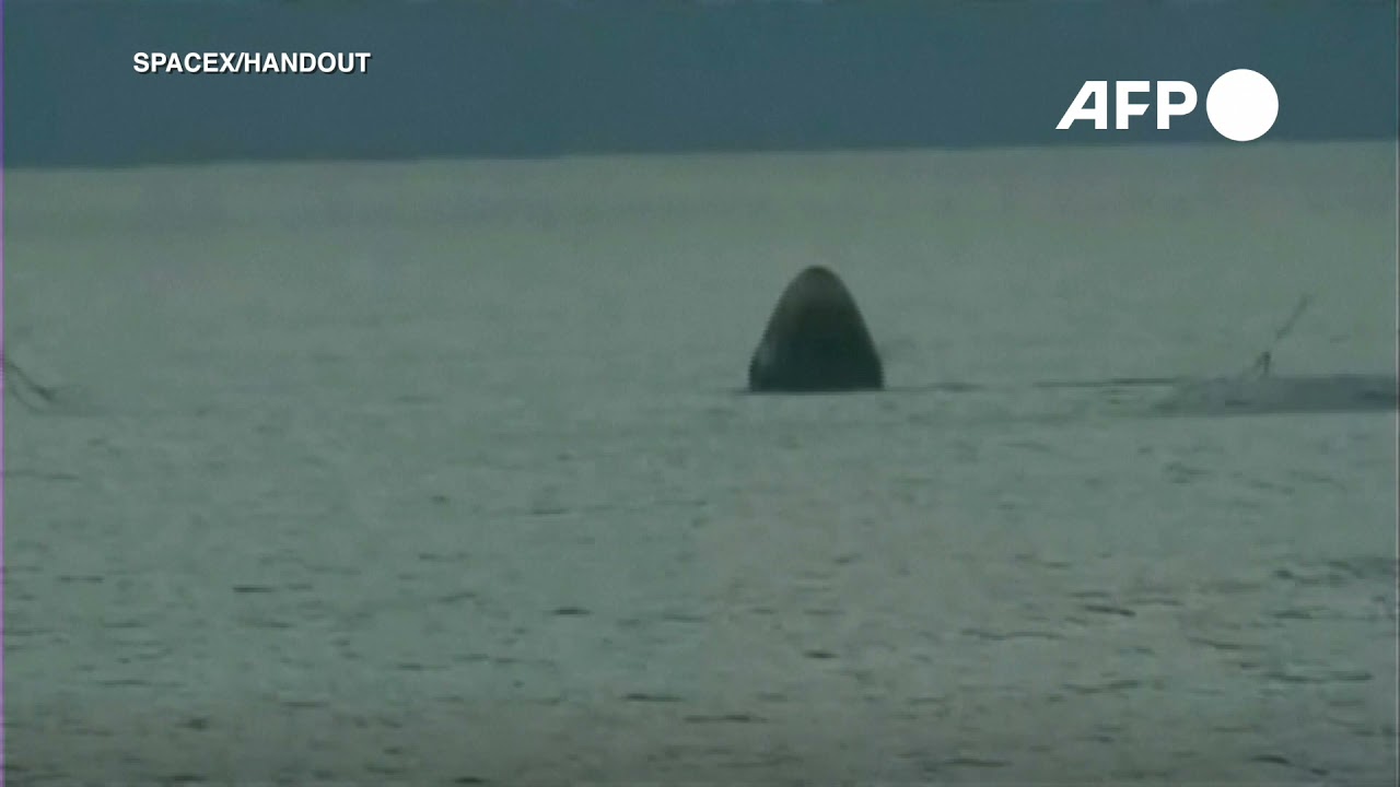 The SpaceX Dragon capsule, whose heat shield allowed it to withstand descent, was slowed down by four large parachutes before splashing into the Atlantic Ocean off the coast of Florida at 7:06 pm (2306 GMT), according to a video feed by the company.