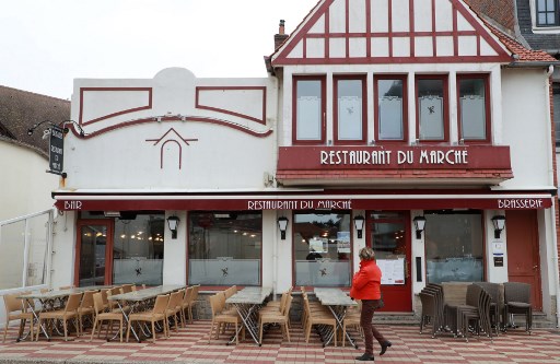 A pedestrian walks past a closed resteraunt in Le Touquet, northern France on March 15, 2020, as France battles the coronavirus that causes the COVID-19 disease. – France and Spain became the latest European nations to impose lockdowns, while Australia joined New Zealand in ordering self-isolation for all arrivals as the number of coronavirus infections around the world passed 150,000, with nearly 6,000 deaths. France ordered the closure of restaurants, bars, cinemas and nightclubs — but said food shops, pharmacies and banks would remain open, and pressed ahead with voting for local elections despite the virus threat (Photo by Ludovic Marin / AFP)