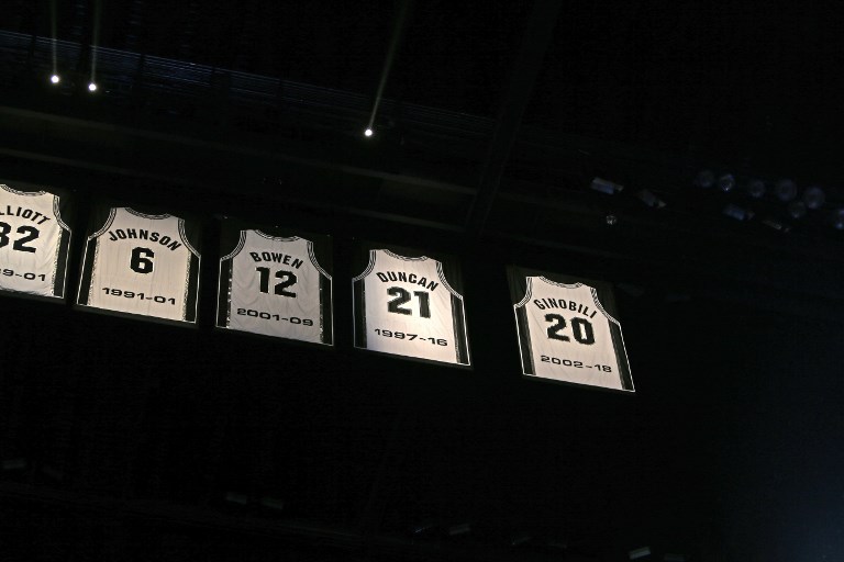 The Spurs raised Ginobili’s No. 20 jersey to the rafters of the AT&T Center, making him the ninth Spurs player to have his number retired.