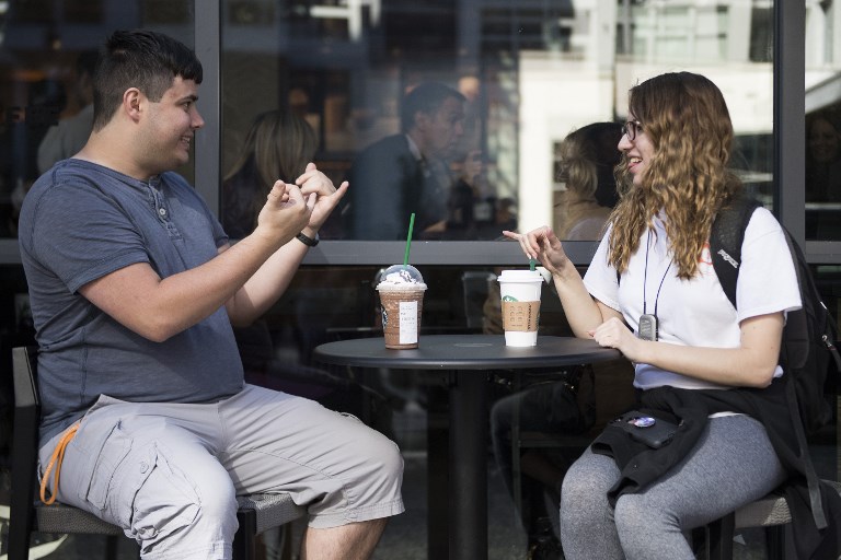 WASHINGTON, United States (AFP) — Rebecca Witzofsky, a 20-year-old deaf student at Gallaudet University in Washington, and her hearing friend Nikolas Carapellatti wanted to get a coffee.