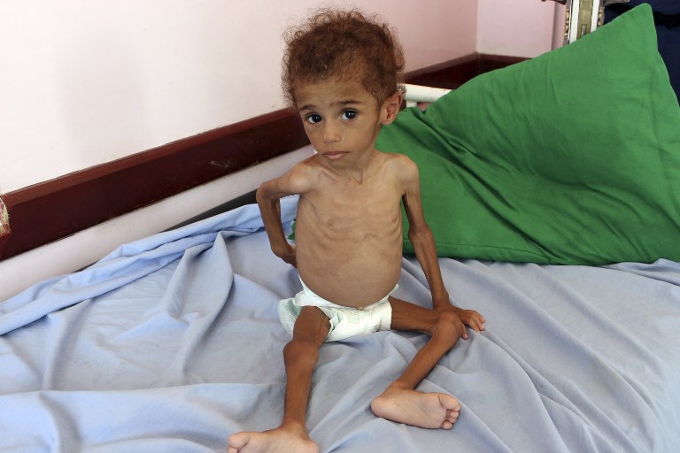 TAEZ, Yemen (AFP) — Skin and bones, 10-year-old Ghazi Saleh lies on a hospital bed in the southwestern Yemeni city of Taez barely breathing. He only weighs eight kilograms.