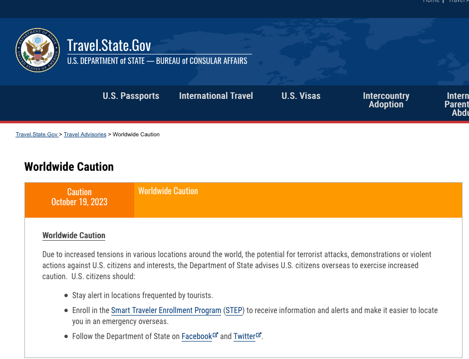 WASHINGTON, Oct 20, 2023 (AFP) – The State Department on Thursday issued a rare “worldwide caution” advisory for US citizens everywhere, citing terrorism and potential for anti-American demonstrations.