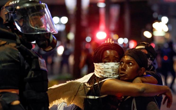 Tuesday’s disturbances in Charlotte unfolded as demonstrators in Tulsa, Oklahoma, demanded the arrest of a police officer seen in a video last week fatally shooting an unarmed black man who had his hands in clear view at the time.