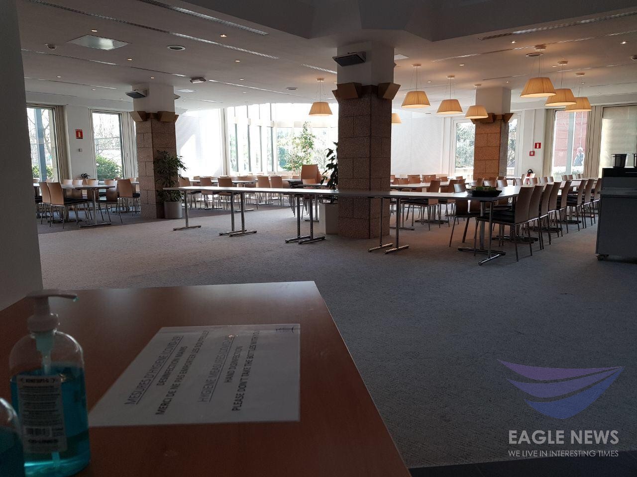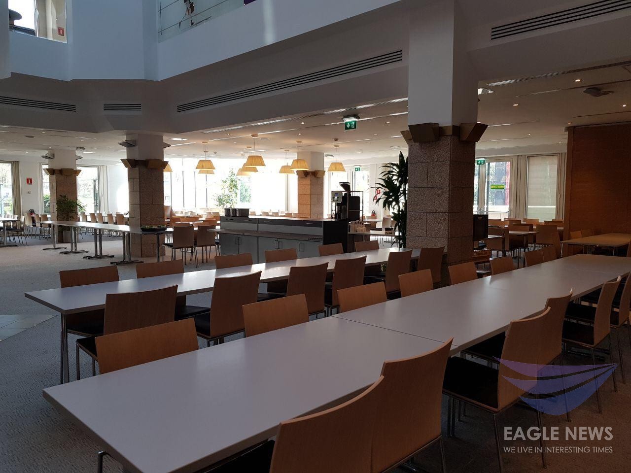 Photo of an office cafeteria in Luxembourg taken 16 March 2020, around 1pm. (Photo by Amil Lopez/EBC Europe Bureau/ Eagle News Service)