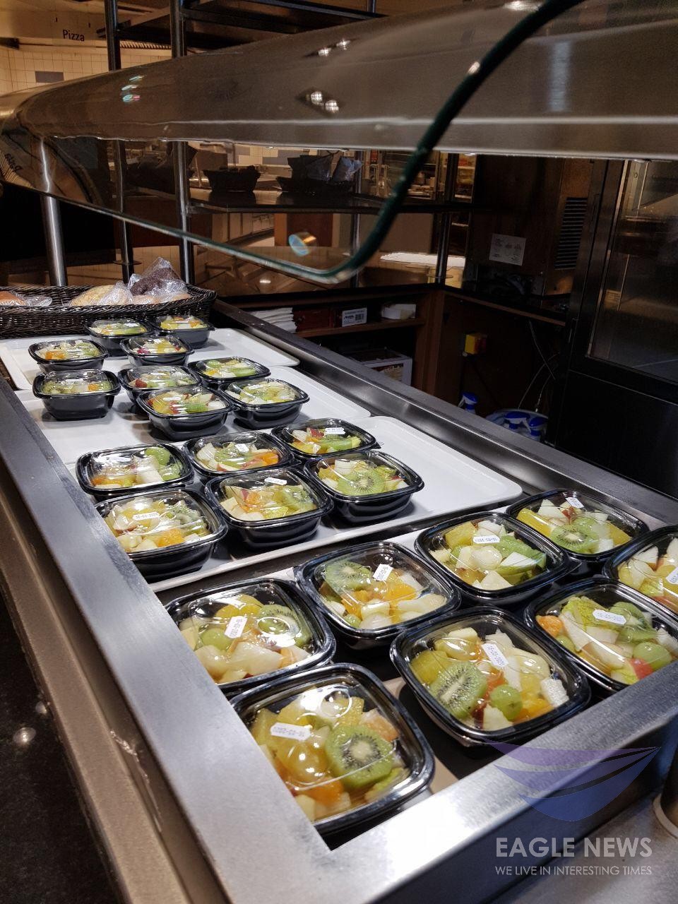 Food is now individually packed so that employees do not need to stay in line while getting their own food at a cafeteria in Luxembourg. ( Photo by Amil Lopez/EBC Europe Bureau/Eagle News Service)