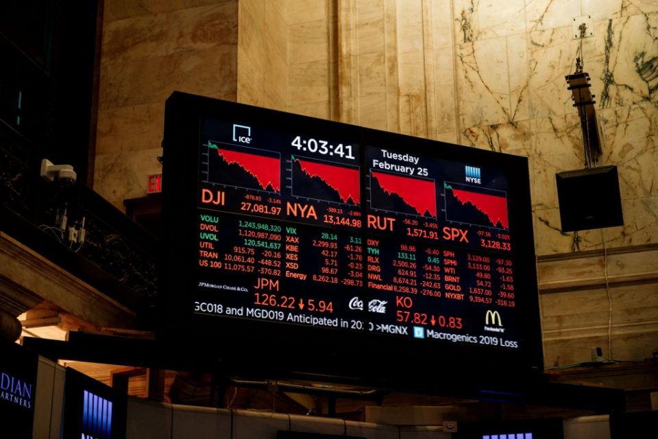 Heavy selling followed another rout Tuesday on Wall Street where all three main indices lost around three percent after officials said COVID-19 would likely take hold in the United States.