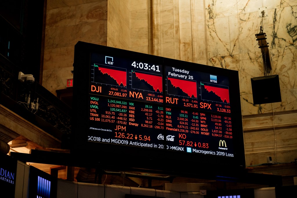 New York – Dow: DOWN 3.2 percent at 27,081.36 (close)