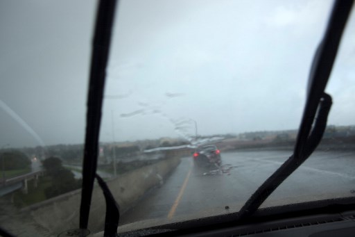 Rain pours as cars drive through a road in New Orleans, Louisiana, on July 12, 2019, ahead of Tropical Storm Barry. – The storm was expected to strengthen into a hurricane late Friday or early Saturday and slam much of Louisiana including the city of New Orleans, dumping up to two feet (61 centimeters) of rain on already water-logged communities. (Photo by Seth HERALD / AFP)